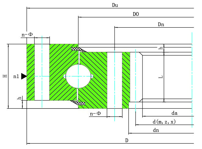 | D | dn | H | h | Du | Dn | φ | n | Du | Dn | d1 | T | n | z | m | d | da | L | X | |||